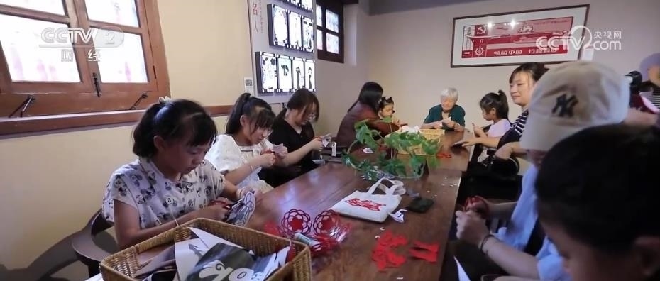 除了傳統(tǒng)店鋪,所城里還融合了很多的非遺體驗打卡點,萊州毛筆、扎染工藝、葫蘆雕刻等,其中,最具特色的當屬民俗剪紙。