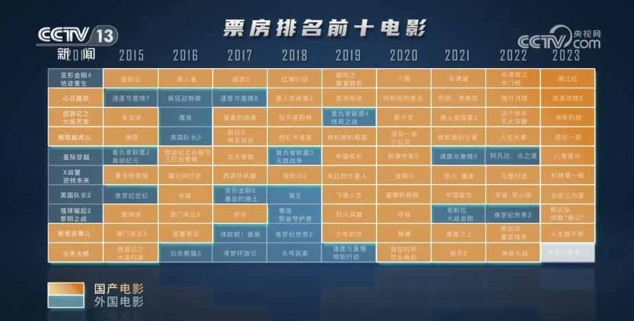 央視網(wǎng)消息:國家電影局最新發(fā)布統(tǒng)計數(shù)據(jù)顯示,2023年暑期檔電影票房已達(dá)178億元,超過2019年暑期檔總票房,創(chuàng)歷史新高。是什么點(diǎn)燃了觀眾對電影的熱情? 通過對近10年票房前10名的電影片尾字幕提取,用數(shù)據(jù)洞察國產(chǎn)電影的發(fā)展。