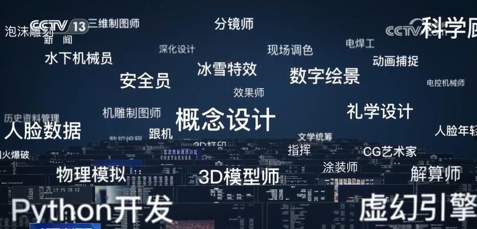 從30多萬字的文本中,AI算法識別出了300多個電影產(chǎn)業(yè)工種,一條隱藏在幕后的國產(chǎn)電影產(chǎn)業(yè)鏈在眼前展開。這是一個電影產(chǎn)業(yè)鏈越分越細(xì)、工種越增越多的過程。20多個新的工種在這10年間誕生,動作捕捉、虛擬拍攝、數(shù)控編程、3D打印等,其中,七成以上的新增工種跟數(shù)字化技術(shù)的進(jìn)步有關(guān)。