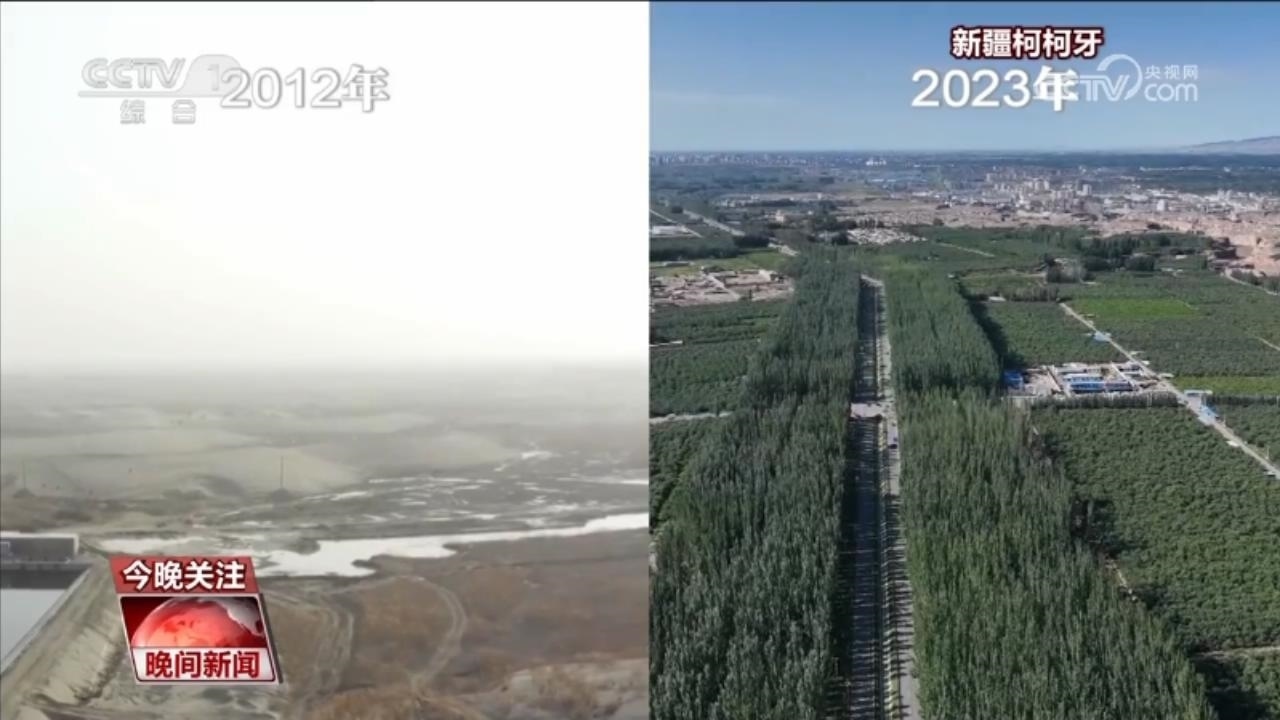 新疆阿克蘇地區(qū)的柯柯牙曾經(jīng)是南疆風(fēng)沙策源地之一。30年來,面對(duì)柯柯牙缺水和土壤鹽堿含量高的情況,當(dāng)?shù)叵到y(tǒng)推進(jìn)山水林田湖草沙一體化保護(hù)和系統(tǒng)治理,柯柯牙綠化工程造林共計(jì)120.26萬畝,累計(jì)栽植樹木1400萬株,荒漠變?yōu)榱趾#罱K在貧瘠的戈壁荒漠中,造就了一道“綠色長城”。