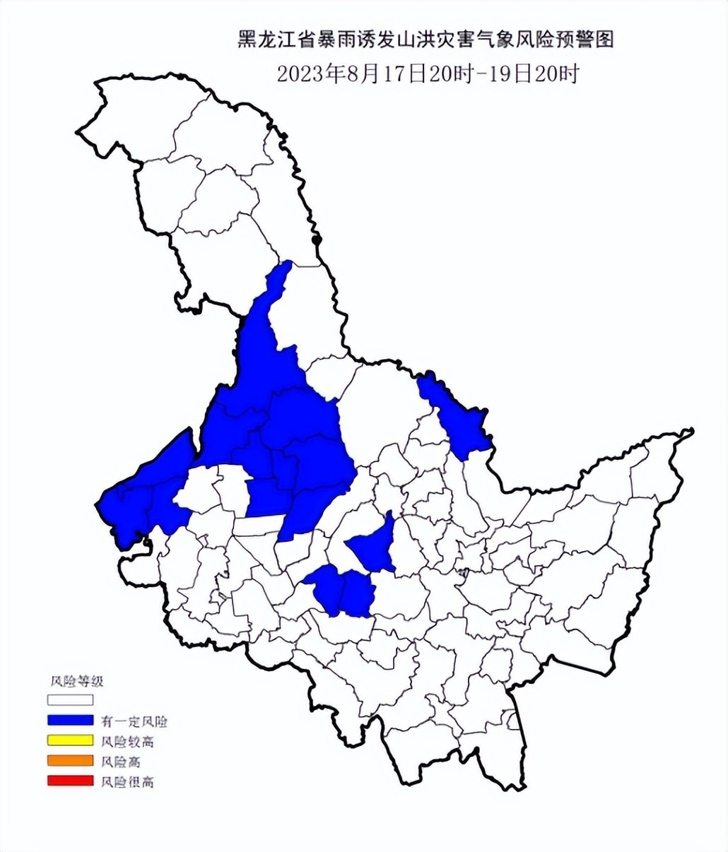 黑龍江省防汛抗旱指揮部辦公室、黑龍江省水利廳、黑龍江省氣象局8月17日20時聯(lián)合發(fā)布藍(lán)色山洪災(zāi)害氣象風(fēng)險預(yù)警:?