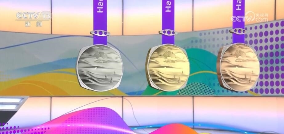 杭州亞運會獎牌名為“湖山”?!昂健睂⒘间疚幕姆叫斡耒蛨A形的獎章融為一體,正面用凸出的線條勾勒出“三面云山一面城”的杭城畫卷,湖水漣漪,山巒起伏。獎牌上方的束扣是一個帶有倒影的三孔橋,設計取自京杭大運河最南端的拱宸橋。一塊獎牌,將杭州的三處世界文化遺產(chǎn):良渚、西湖、大運河都融入其中。