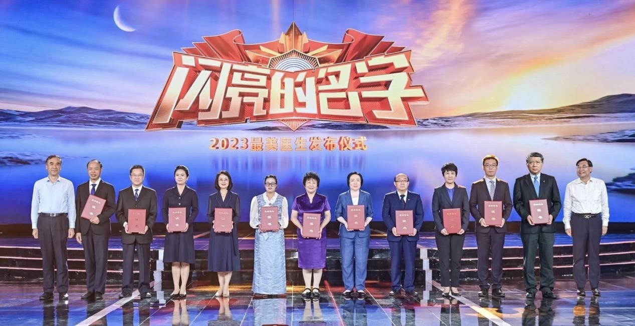 圖:中共中央宣傳部分管日常工作的副部長(zhǎng)、文化和旅游部部長(zhǎng) 胡和平(右一);國(guó)家衛(wèi)生健康委副主任 李斌(左一)為2023年“最美醫(yī)生”代表頒發(fā)證書。