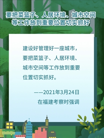 2021年3月24日,習(xí)近平在福建福州福山郊野公園觀景平臺(tái),聽取城市生態(tài)公園規(guī)劃建設(shè)、城市水系綜合治理情況匯報(bào)。