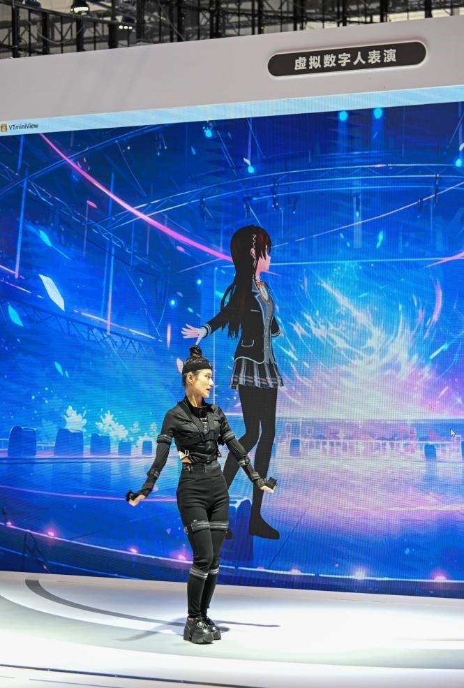 在中國電信股份有限公司天津分公司展臺(tái),真人舞者身穿智能裝備,每做一個(gè)舞蹈動(dòng)作巨型屏幕上的數(shù)字人都能實(shí)時(shí)精準(zhǔn)再現(xiàn),就連舞者的面部表情都可以精準(zhǔn)模仿……目前,由真人扮演驅(qū)動(dòng)或人工智能驅(qū)動(dòng)的數(shù)字人已被中國旅游行業(yè)廣泛應(yīng)用。