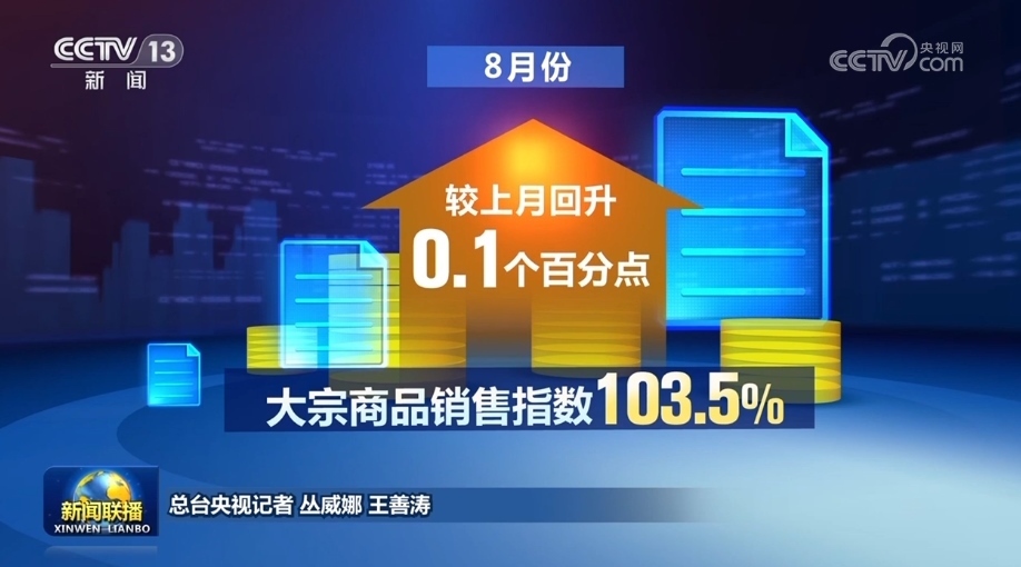 另外, 8月份大宗商品銷售指數(shù)為103.5%,較上月回升0.1個百分點,終端市場及貿(mào)易商的采購意愿有所增強,市場需求整體向好。