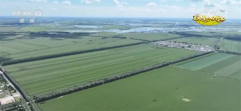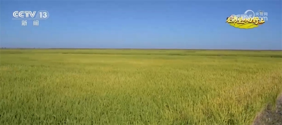 總臺央視記者 蔣樹林:這里是國家耐鹽堿水稻技術(shù)創(chuàng)新中心東北中心的千畝示范園,我手指的這個方向是沒有利用過的原始風貌的鹽堿荒灘,這邊是已經(jīng)改造后生長水稻的鹽堿地。如果后期沒有大的自然災(zāi)害,今年豐收會有一定基礎(chǔ)。