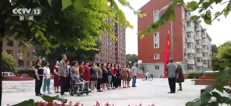 國慶假期,早上8時,小區(qū)升旗儀式準(zhǔn)時開始。