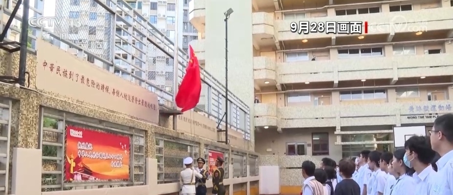 央視網(wǎng)消息:為慶祝中華人民共和國成立74周年,9月28日,香港培僑中學(xué)邀請解放軍駐香港部隊三軍儀仗隊來校為全體師生舉行升國旗儀式。培僑中學(xué)是新中國成立后首批升起五星紅旗的香港學(xué)校之一,從那時起,升國旗的儀式在培僑中學(xué)代代相傳,迄今已經(jīng)延續(xù)了74年。