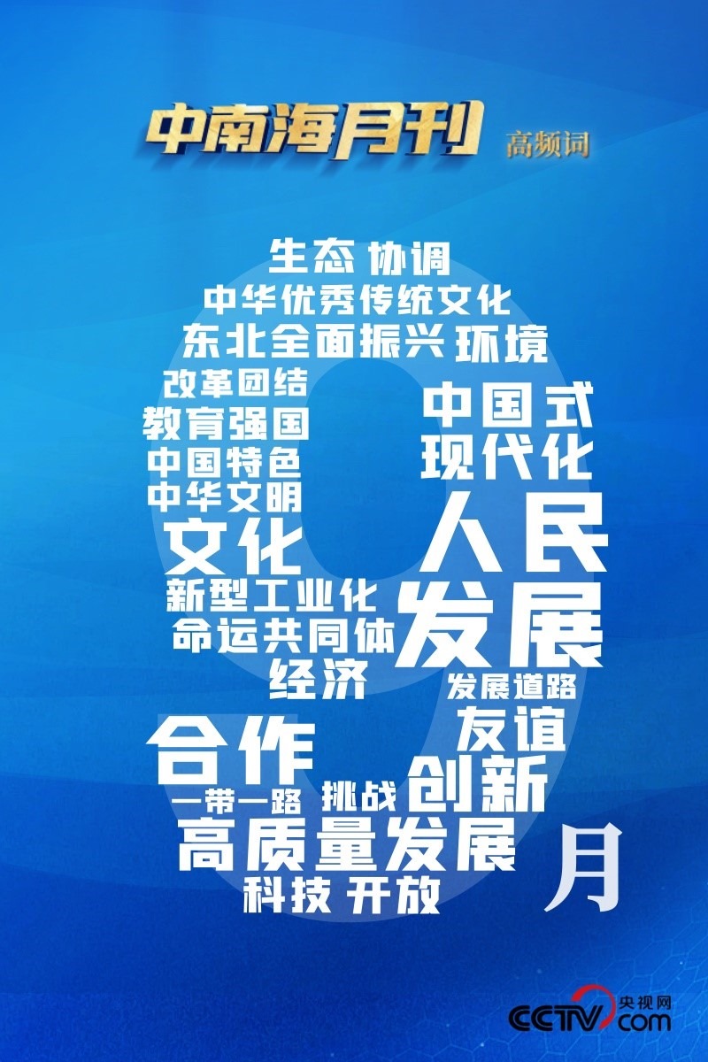 任何一個(gè)地方要實(shí)現(xiàn)高質(zhì)量發(fā)展,首先要明確自身在國(guó)家戰(zhàn)略全局中的定位。央視網(wǎng)I學(xué)習(xí)數(shù)據(jù)庫(kù)梳理分析習(xí)近平總書記9月重要講話,“發(fā)展”“人民”“合作”等詞語(yǔ)持續(xù)高頻出現(xiàn),“中國(guó)式現(xiàn)代化”“東北全面振興”“協(xié)調(diào)”等詞引人關(guān)注。通過(guò)這些高頻詞,共同學(xué)習(xí)、領(lǐng)悟總書記對(duì)地方實(shí)踐的戰(zhàn)略思考。