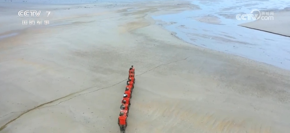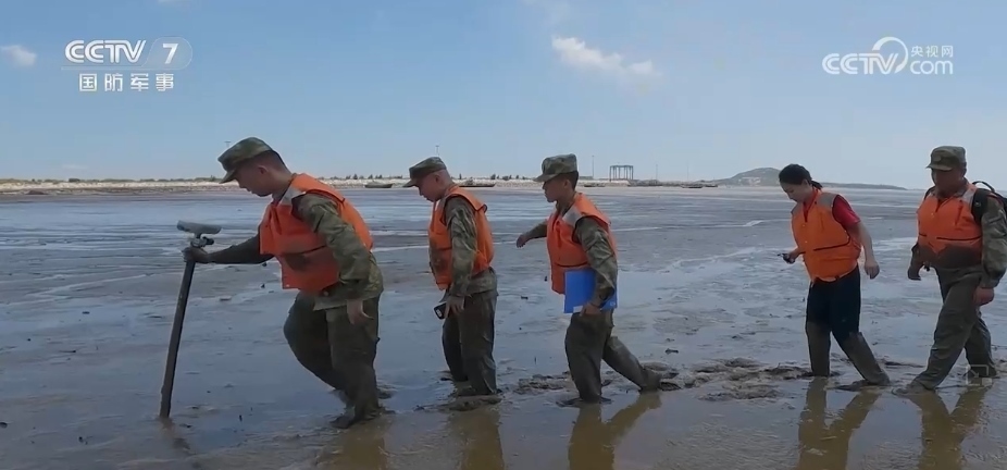 幸運(yùn)的是,記者跟隨采訪的這次任務(wù)沒有遭遇到大風(fēng)浪,經(jīng)過1個小時(shí)的平穩(wěn)航行后,海測小分隊(duì)順利抵達(dá)了坐標(biāo)方位。指揮員告訴記者,海測分為水深測量和地形測量,為了讓海圖上陸海結(jié)合部的拼接更加完美,海測兵們必須要背著沉重的測量裝備深入到小艇不能到達(dá)的岸線灘涂手動測繪,測量點(diǎn)位附近大大小小的礁石,在海水的長期浸泡下變得異常濕滑,泥濘的淺灘也隨時(shí)有塌陷的危險(xiǎn)。