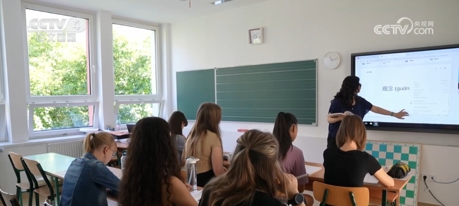 這是位于匈牙利首都布達佩斯的一所匈中雙語學校。周一上午的一節(jié)中文課,學生們正在學習一些職場常用的中文,每個人都聽得聚精會神。這所學校也是納入匈牙利國民教育體系的公立學校,在這里漢語是必修課。