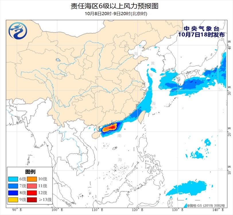 10月10日夜間至14日白天,受冷空氣和臺風“小犬”的共同影響,東海南部海域、臺灣海峽、臺灣以東洋面、巴士海峽、南海北部海域、北部灣將有7~8級、陣風9~10級的大風,其中臺灣海峽、南海東北部海域、瓊州海峽、北部灣部分海域風力可達9級、陣風10~11級。