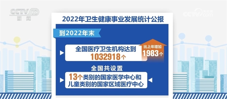 《公報》顯示,我國醫(yī)療衛(wèi)生資源總量繼續(xù)增加。到2022年末,全國醫(yī)療衛(wèi)生機構(gòu)達到1032918個,比上年增加1983個。全國共設(shè)置13個類別的國家醫(yī)學(xué)中心和兒童類別的國家區(qū)域醫(yī)療中心。全國醫(yī)療衛(wèi)生機構(gòu)床位975.0萬張,每千人口醫(yī)療衛(wèi)生機構(gòu)床位數(shù)由2021年的6.70張增加到2022年的6.92張。全國衛(wèi)生人員總數(shù)1441.1萬人,比上年增加42.5萬人。每千人口執(zhí)業(yè)(助理)醫(yī)師3.15人,每千人口注冊護士3.71人。