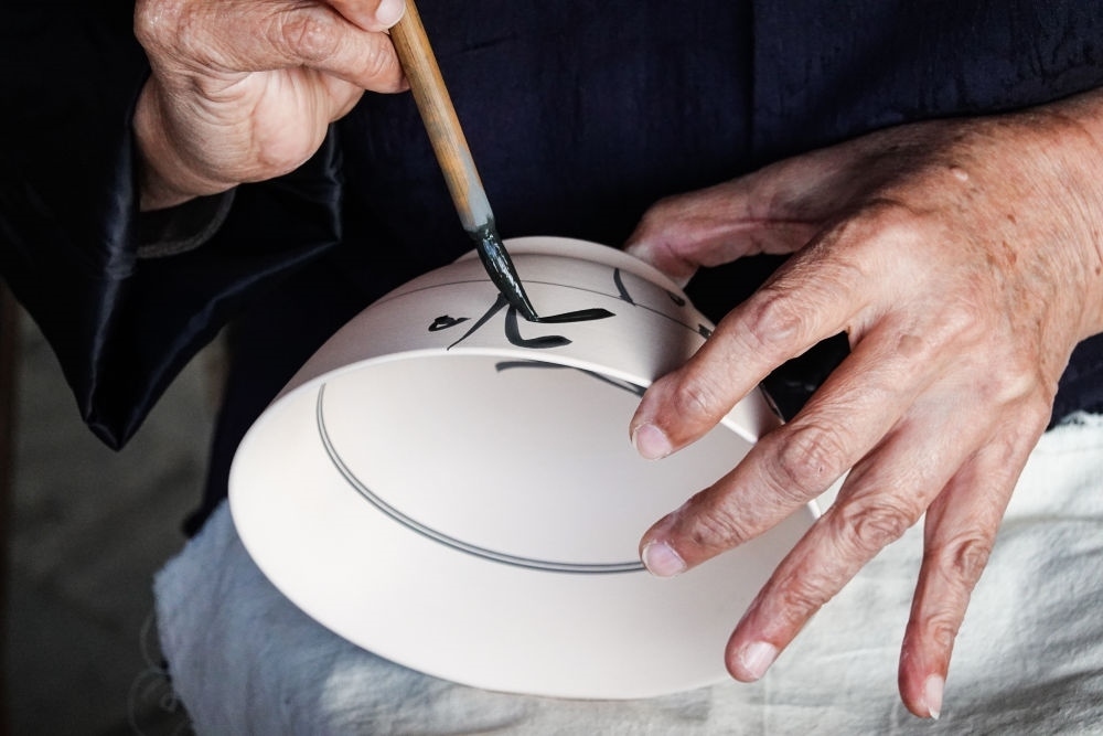 手工藝人師徒在陶陽(yáng)里歷史文化街區(qū)展示畫(huà)坯(2023年10月11日攝)。