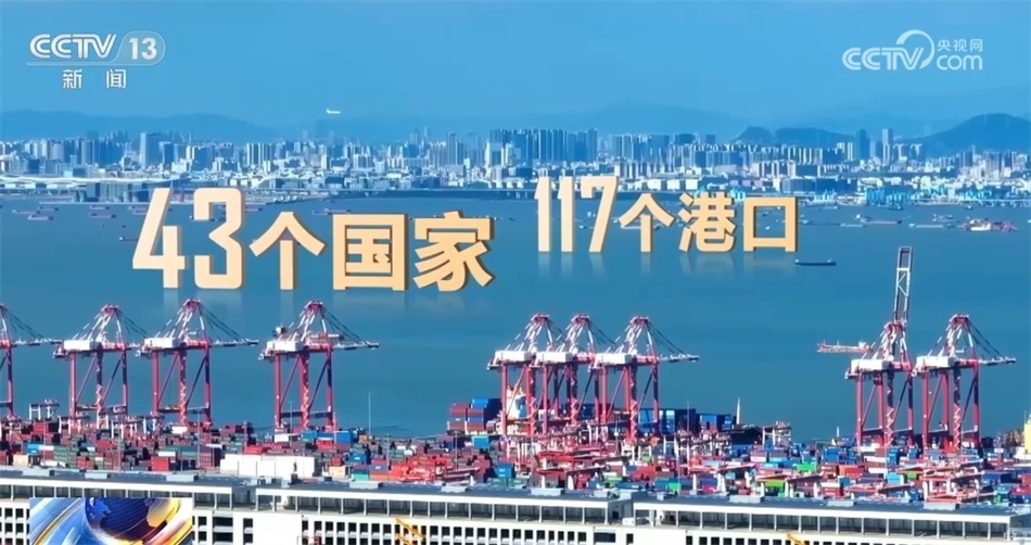向大海,這是2013年時中國與共建“一帶一路”國家間的水運(yùn)航線。十年間,共建“一帶一路”國家間的水運(yùn)航線數(shù)量翻了一番,新增航線達(dá)到了1344條,穿梭其中的貨船增加150%。“絲路海運(yùn)”航線已通達(dá)全球43個國家的117個港口,織出了一張聯(lián)通世界的貿(mào)易流動網(wǎng)絡(luò)。
