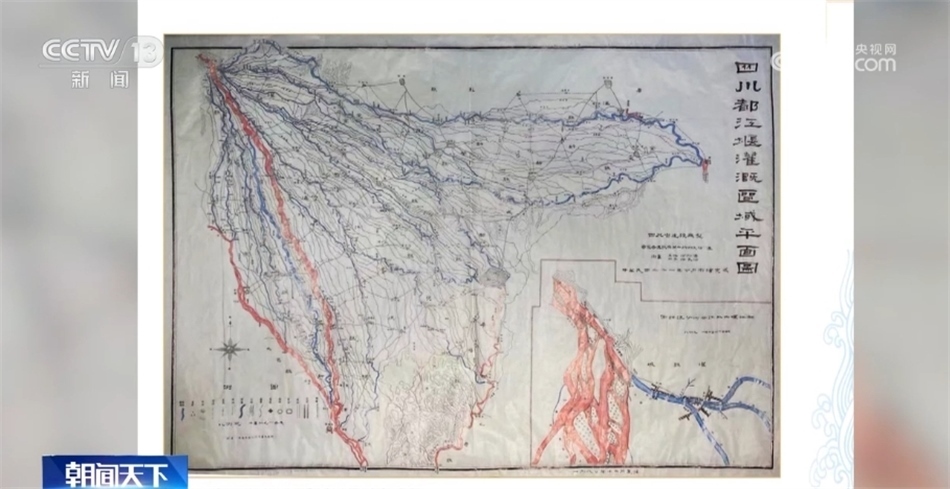 四川省都江堰水利發(fā)展中心副主任 吳鑒:這幅圖是在新中國(guó)成立之前的一張都江堰灌溉的平面圖。從圖上可以顯示,(當(dāng)時(shí))整個(gè)都江堰只灌溉了14個(gè)縣282萬(wàn)畝的農(nóng)田。這是我們今年新繪制的都江堰灌溉區(qū)域圖。從這個(gè)圖上可以看到,以都江堰作為頂沖點(diǎn),整個(gè)都江堰灌區(qū)變得更大了,扇面進(jìn)一步擴(kuò)大了。