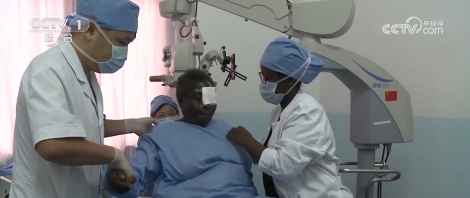 剛果(布)居民瑪?shù)倌龋谥袆傆押冕t(yī)院做了眼科手術(shù)后重獲光明。