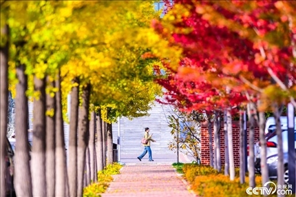 2023年10月17日,沈陽(yáng)農(nóng)業(yè)大學(xué)迎來最佳觀賞季,金黃的銀杏、火紅的楓樹,吸引人們前來打卡拍照。