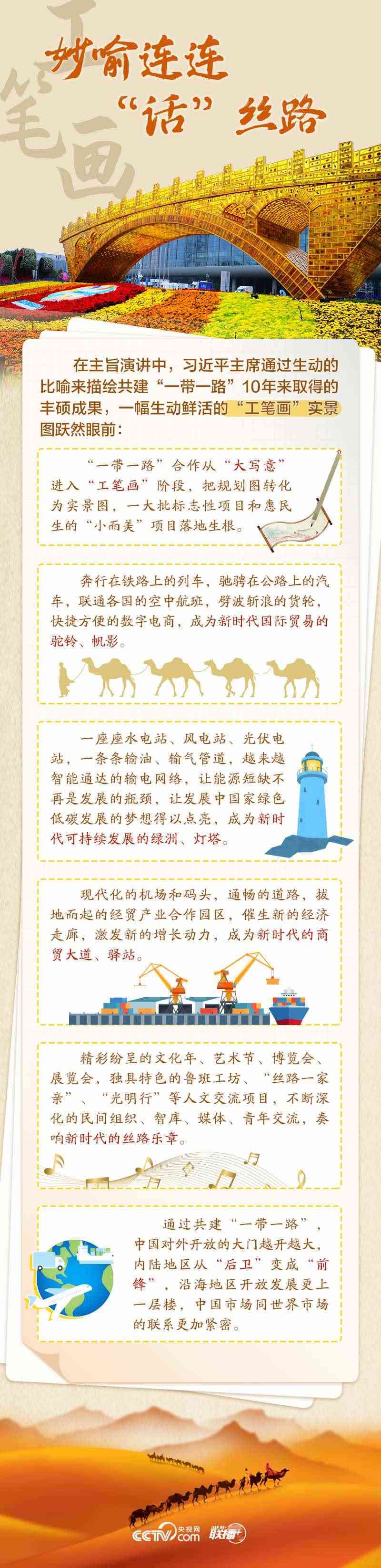 站在共建“一帶一路”倡議走過(guò)十年這個(gè)標(biāo)志性節(jié)點(diǎn),這幅“工筆畫(huà)”呈現(xiàn)怎樣的實(shí)景圖?高質(zhì)量共建“一帶一路”如何再出發(fā)?央視網(wǎng)《聯(lián)播+》欄目從五個(gè)維度為您速讀習(xí)主席講話(huà),與您一同學(xué)習(xí)。