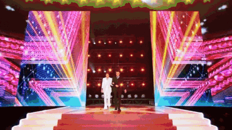 想象中的場景,可能是在聚光燈下,伴著丁達(dá)爾現(xiàn)象投射的粉塵光柱,看他帶著招牌笑容走來;也許是在幕布后邊黑乎乎的候場區(qū),看他熟練地繞開腳下的各種道具和電纜,拿著提詞手卡和工作人員討論細(xì)節(jié);又或者是在一個(gè)燈火通明的圓形會(huì)議室里,看他坐在有他名字的桌牌前,握著桌上的臺(tái)式小麥克風(fēng)發(fā)言……