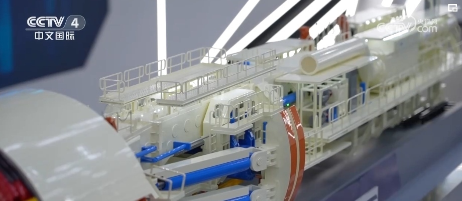 總臺(tái)記者 趙鶴:除了應(yīng)用在相對(duì)小型的產(chǎn)線上,在盾構(gòu)機(jī)、掘進(jìn)機(jī)這樣的國(guó)之重器上,也早已經(jīng)憑借物聯(lián)網(wǎng)技術(shù)進(jìn)行了智能化的升級(jí)。從這臺(tái)等比例縮小的硬巖隧道掘進(jìn)機(jī)的模型可以看到,在它的最前方是刀盤,用來(lái)進(jìn)行碾磨巖石作業(yè),在這樣一個(gè)和巖石產(chǎn)生激烈碰撞的地方也有傳感器的存在,來(lái)感知這些刀具的磨損轉(zhuǎn)速等數(shù)據(jù)信息。