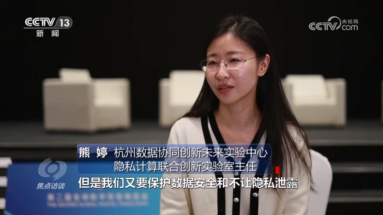 杭州數(shù)據(jù)協(xié)同創(chuàng)新未來實驗中心隱私計算聯(lián)合創(chuàng)新實驗室主任熊婷:“我們要加速數(shù)據(jù)要素快速的價值釋放,但是又要保護(hù)數(shù)據(jù)安全,不讓隱私泄露,現(xiàn)在天然就存在著一定的互相制約,我們怎么解決這個問題?隱私計算實際上是用密碼學(xué)、各種技術(shù)讓數(shù)據(jù)不拿出去,但是又能使用到數(shù)據(jù)的價值。要用各種技術(shù)手段、前沿技術(shù)保護(hù)自己的數(shù)據(jù),安全合規(guī)的使用數(shù)據(jù)?!?/p>