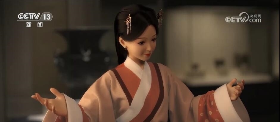 數(shù)智人“艾雯雯”的形象設(shè)計凝聚著中國國家博物館館藏古代服飾的研究成果,數(shù)字編程設(shè)計者對中國女性容貌審美的領(lǐng)悟。身著素雅襦裙,紅色丹脂點唇,盡顯漢代女子的溫婉。今年11月,中國國家博物館文物活化利用新成果——中華文明云展試點上線,在“古代中國”展廳,她作為一名虛擬數(shù)智人與館藏文物產(chǎn)生神奇感應(yīng),獲得了讓“文物活起來”的獨特能力,驚艷全場。