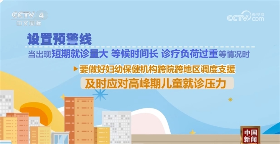 設(shè)置預(yù)警線,當(dāng)出現(xiàn)短期就診量大、等候時(shí)間長、診療負(fù)荷過重等情況時(shí),要做好婦幼保健機(jī)構(gòu)跨院跨地區(qū)調(diào)度支援,及時(shí)應(yīng)對(duì)高峰期兒童就診壓力。