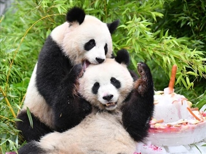 ·柏林動(dòng)物園為即將回國的大熊貓雙胞胎“夢(mèng)想”和“夢(mèng)圓”舉辦歡送活動(dòng)。