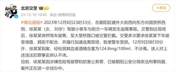 ·北京交警通報(bào):一女子醉駕肇事逃逸并撞壞警車,已被刑拘。