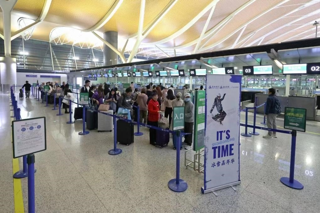 11月23日,一批游客從上海出發(fā)前往長(zhǎng)白山參加“冰雪嘉年華”。新華社記者陳愛(ài)平 攝