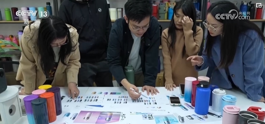 這兩天,王博文和設(shè)計團隊正在為即將在海外上線的新款保溫杯挑選顏色,等顏色確定就可以開始大批量的生產(chǎn)。
