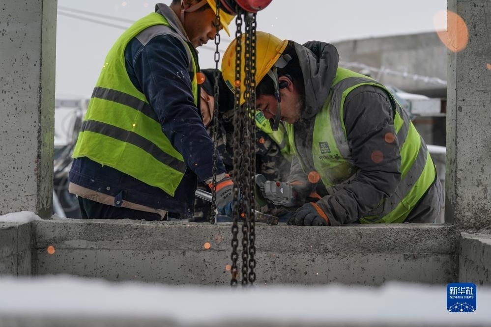 12月12日,工人在位于北京市海淀區(qū)的一處工地上進(jìn)行施工作業(yè)。