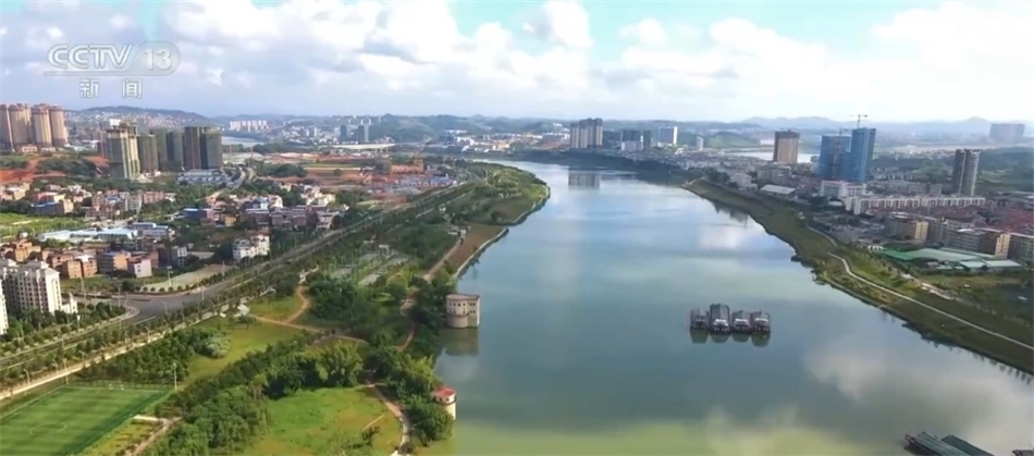 現(xiàn)在我們看到的是廣西南寧邕江河畔,沿岸植被郁郁蔥蔥,10多座濱水公園各具特色,200多處運動場分布其中。市民們在球場里、在步道上盡享運動健身帶來的樂趣,不僅有各種體育運動場所,還有健身器材及滑梯、秋千等兒童游樂設施。
