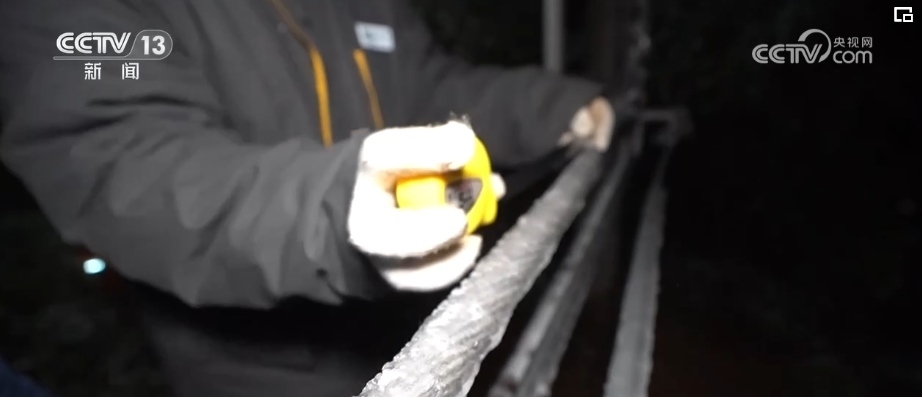 根據現場檢測,現在導線上的覆冰已經超過了18毫米,融冰工作也正式開始。老廖告訴記者,他們采用的是導電加熱融冰的手段,通過對導線進行增加大電流,自動加熱,從而讓冰融化,但這一過程有時候要等很久。