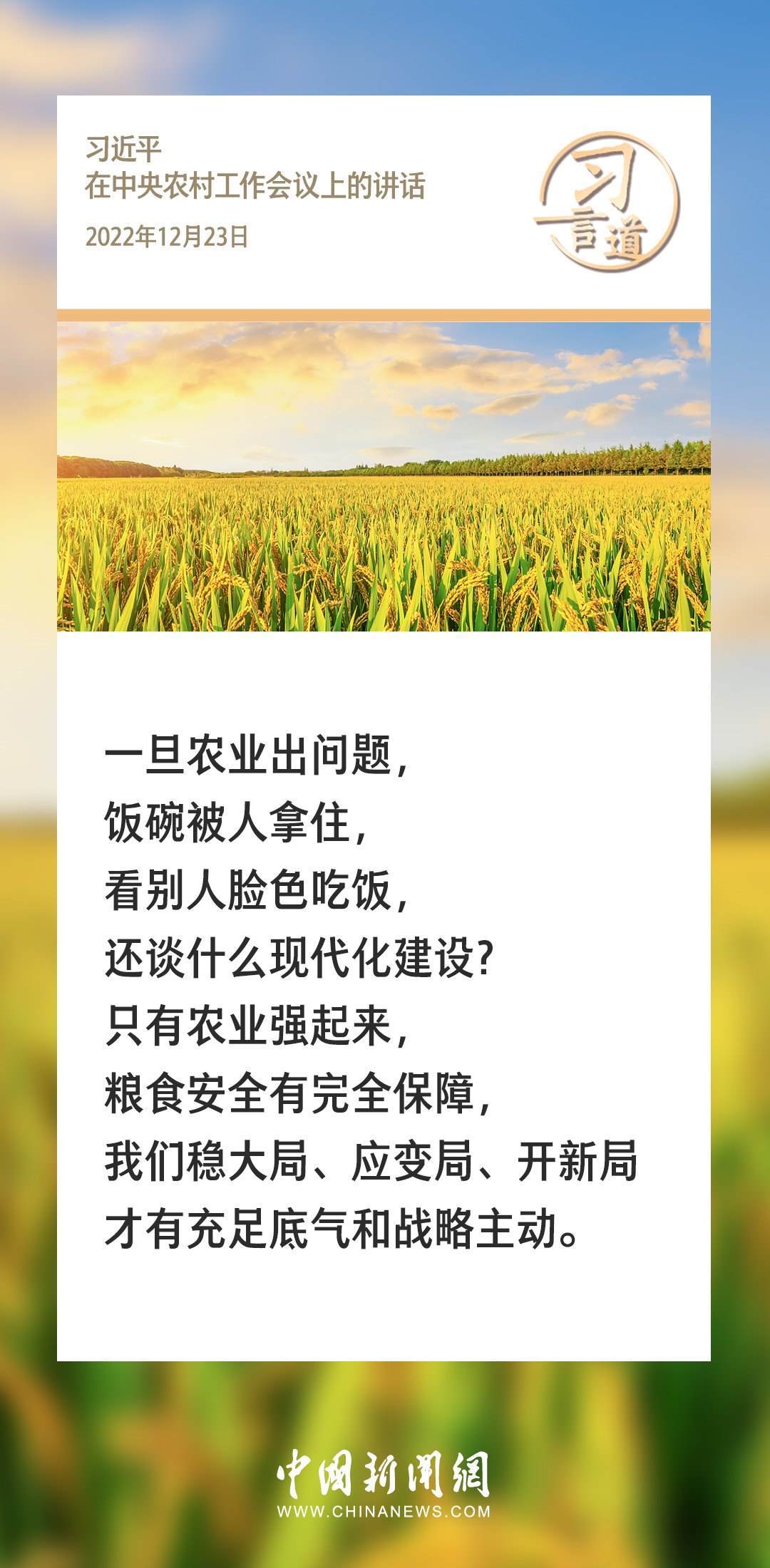 農(nóng)為邦本,本固邦寧。習(xí)近平總書記多次在不同場(chǎng)合就“三農(nóng)”工作發(fā)表重要講話、作出重要部署,始終堅(jiān)持把解決好“三農(nóng)”問(wèn)題作為全黨工作的重中之重。