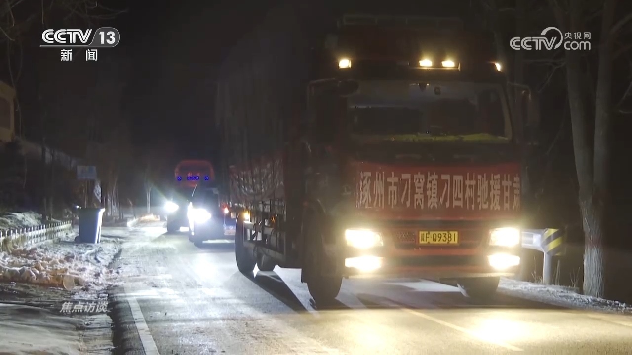 為了盡快給村民送去保障物資,刁四村村民的車隊日夜兼程。22日凌晨,歷經(jīng)32個小時,帶著全村2000多人的囑托,這個車隊跨越1600公里,終于抵達(dá)了積石山縣的安集鎮(zhèn)。顧不上休息,刁四村的村民就和當(dāng)?shù)卮迕褚黄鸢沿浳镄读讼聛怼N遘囄镔Y,足足卸了三個小時,其中包括2400件軍大衣、2580件棉被、1820副自發(fā)熱鞋墊。