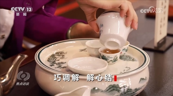 一邊喝茶,一邊調(diào)解矛盾糾紛,指導(dǎo)朱桂曼這次成功調(diào)解鄰里之間矛盾糾紛的是他們總結(jié)出的“茶文化六步調(diào)解法”,包括:識茶,甄別矛盾;醒茶,追根溯源;泡茶,公平公正;斟茶,把握分寸;敬茶,以禮相待;悟茶,紓解心結(jié)。