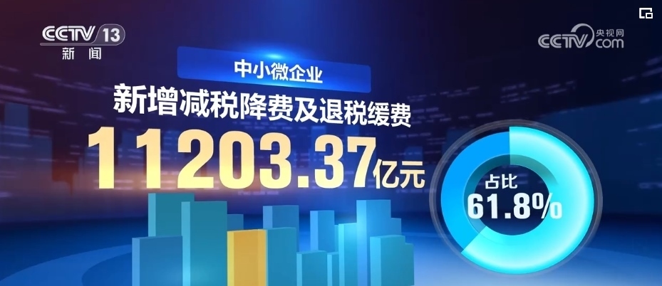 分企業(yè)規(guī)???,中小微企業(yè)受益最明顯,新增減稅降費(fèi)及退稅緩費(fèi)11203.37億元,占比61.8%。