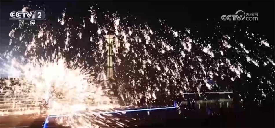 新年將至,大南門歷史文化街區(qū)里豐富多樣的民俗活動(dòng)吸引了大批的游人。其中,特色表演滾花龍表演講究“圓”而“猛”,龍身舞動(dòng)起來后更像是滾動(dòng)的花環(huán),預(yù)示著新的一年里希望大家活力滿滿、努力奮進(jìn)的美好祝愿。1600℃的鐵汁被高高拋起,被木板奮力打散,瞬間,夜空中萬(wàn)點(diǎn)星辰散開,美不勝收。