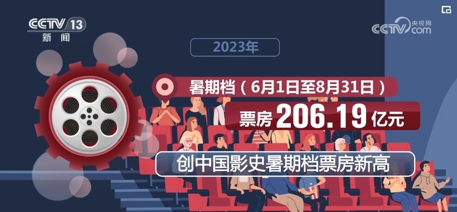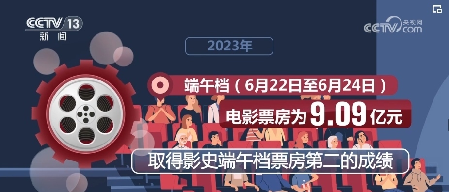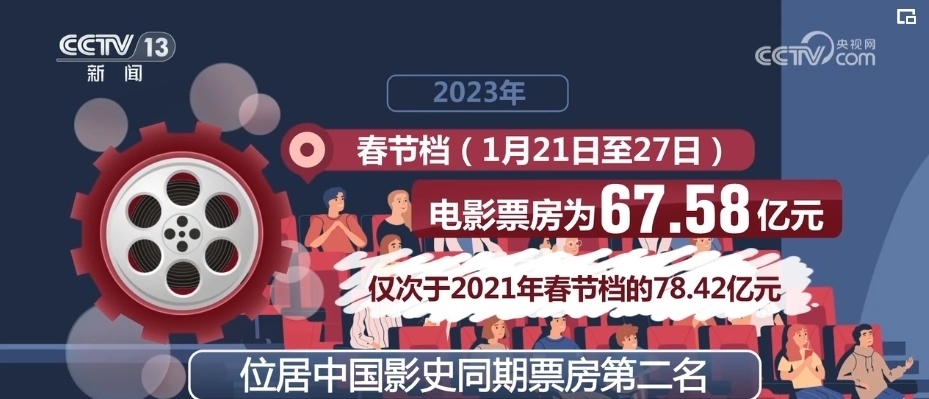 2023年春節(jié)檔(1月21日至27日)電影票房為67.58億元,僅次于2021年春節(jié)檔的78.42億元,位居中國(guó)影史同期票房第二名。端午檔(6月22日至6月24日)電影票房為9.09億元,取得了影史端午檔票房第二的成績(jī)。暑期檔(6月1日—8月31日)票房206.19億元,創(chuàng)中國(guó)影史暑期檔票房新高。
