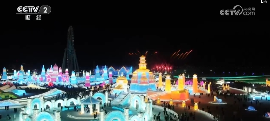 總臺央視記者 郭晉華:在這個冰雕玉砌的世界,一簇簇焰火映襯著流光溢彩的冰雕建筑群,帶著人們對新年的祈盼噴薄而出。哈爾濱冰雪大世界,雖然現(xiàn)在室外氣溫達到了零下20多度,但是大家冰雪跨年的熱情卻是點燃了全場,來自全國各地的游客在這場狂歡中一起迎接新年的到來。