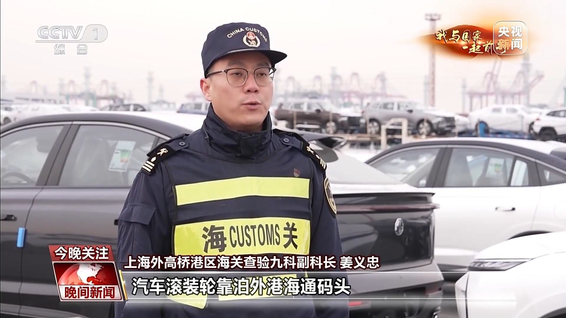 上海外高橋港區(qū)海關(guān)查驗(yàn)九科副科長(zhǎng) 姜義忠:2023年平均每天都有2—3艘汽車滾裝輪靠泊外港海通碼頭。汽車出口可以實(shí)現(xiàn)“即報(bào)即放”“即查即放”,確保汽車出口“零延時(shí)”。