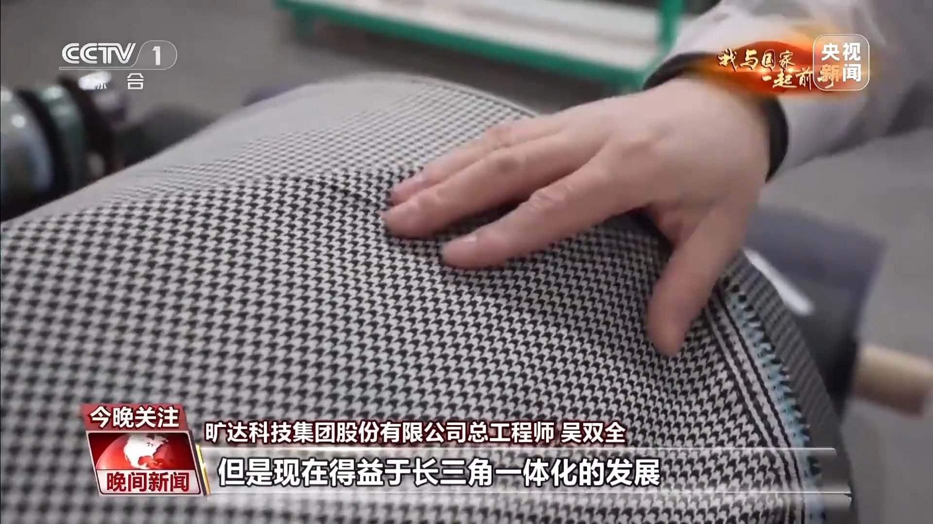 曠達(dá)科技集團(tuán)股份有限公司總工程師 吳雙全:這款面料,三年前我們開發(fā)這款產(chǎn)品,可能需要6到12個(gè)月的時(shí)間,但是現(xiàn)在得益于長(zhǎng)三角一體化的發(fā)展和我們的產(chǎn)業(yè)鏈完備的這樣一個(gè)優(yōu)勢(shì),從接到客戶需求到最終批量供貨,我們只需要3個(gè)月的時(shí)間。