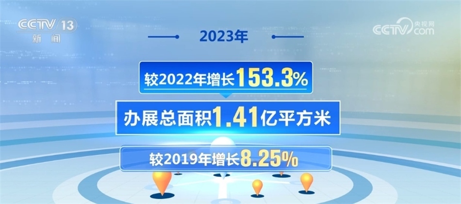 《中國展覽經(jīng)濟(jì)發(fā)展報(bào)告2023》統(tǒng)計(jì)數(shù)據(jù)顯示,2023年中國共舉辦經(jīng)貿(mào)類展會3923場,較2022年增長117.1%,較2019年增長10.6%;辦展總面積1.41億平方米,較2022年增長153.3%,較2019年增長8.25%。經(jīng)貿(mào)類展會數(shù)量和展出面積超越疫情前水平,展覽業(yè)呈現(xiàn)全面恢復(fù)態(tài)勢。