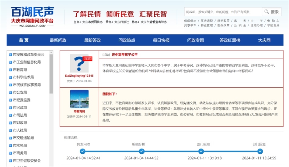 ·家長稱大量河南中學(xué)生“中考移民”至黑龍江大慶各個中學(xué),官方回應(yīng):暫時關(guān)閉學(xué)籍系統(tǒng),成立聯(lián)合調(diào)查組徹查違規(guī)行為。