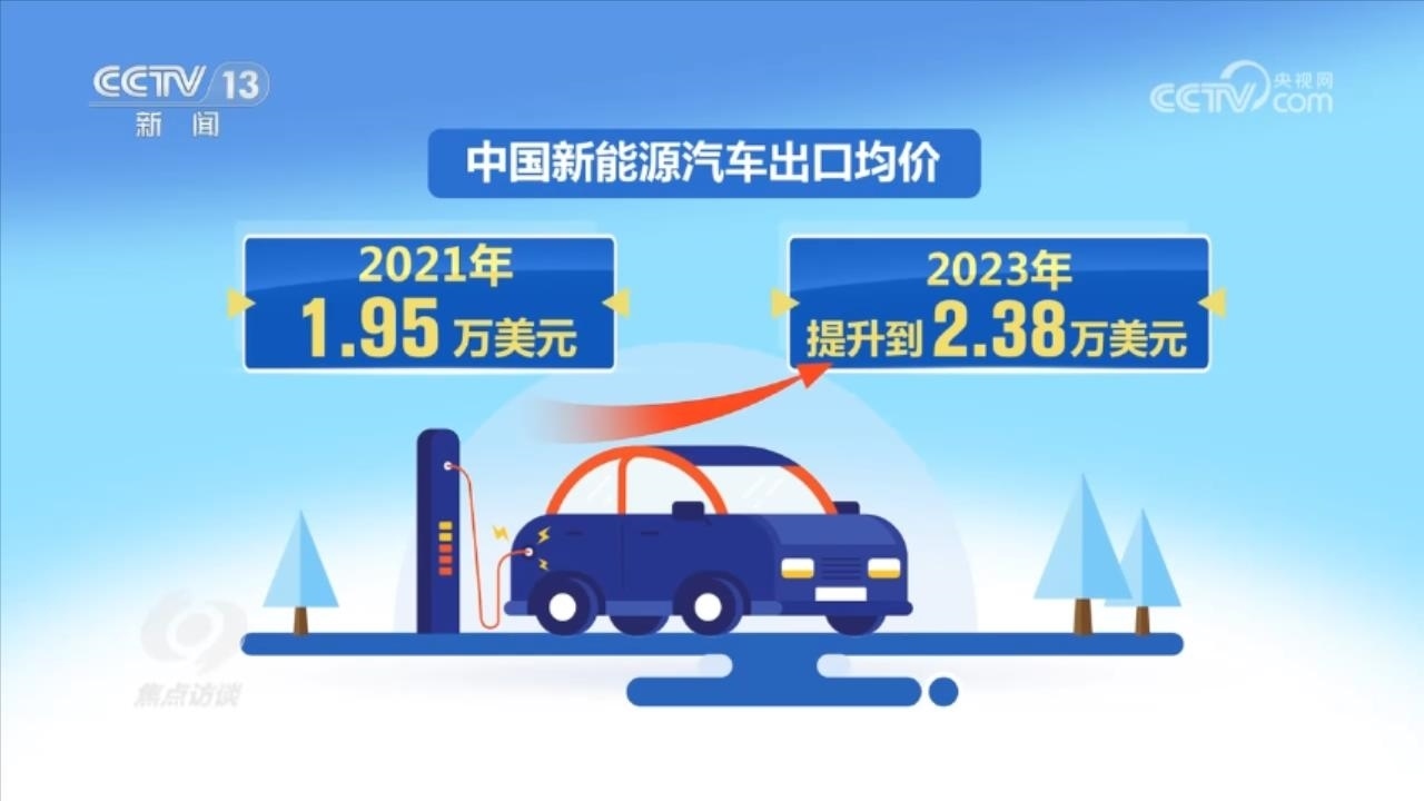 而在分析中國(guó)新能源汽車出口數(shù)據(jù)時(shí),我們還發(fā)現(xiàn)了這樣的變化:出口均價(jià)從2021年的1.95萬美元,提升到2023年的2.38萬美元。也就是說,這幾年,中國(guó)新能源汽車出海,是真正實(shí)現(xiàn)了“量?jī)r(jià)齊升”。