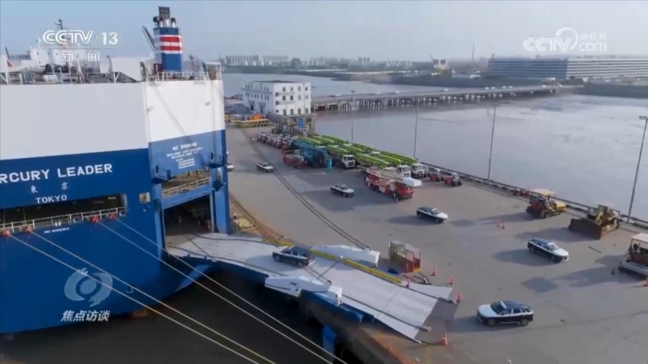 一大早,兩艘遠(yuǎn)洋貨輪整裝待發(fā),放眼望去,密密麻麻的汽車準(zhǔn)備裝船出海。