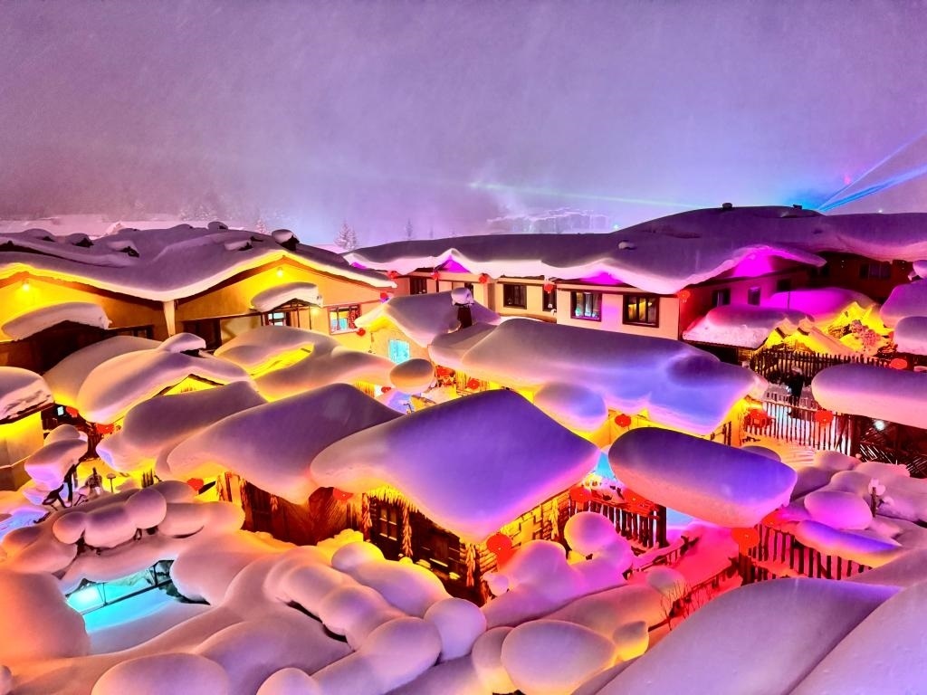 黑龍江省“中國(guó)雪鄉(xiāng)”景區(qū)夜景(1月12日攝)。新華社記者 劉赫?qǐng)?攝